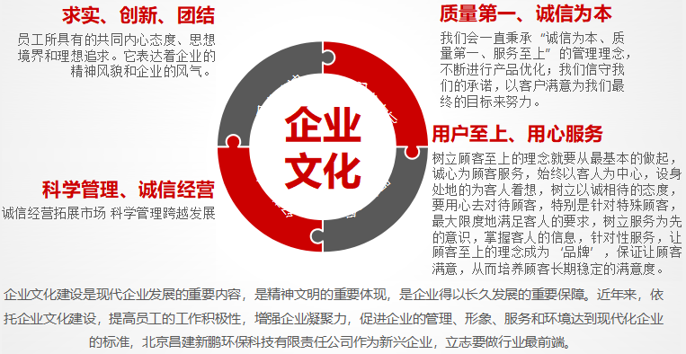 北京昌建新鹏环保科技有限责任公司是一家新兴的建筑环保型企业,公司专注于有机固体废弃物的无害化、减量化、资源化处理,是有机固体废弃物处理处置的服务商。在资源化方向实现产业链布局,为政府和企业提供综合解决方案。公司位于北京市昌平区南口镇。