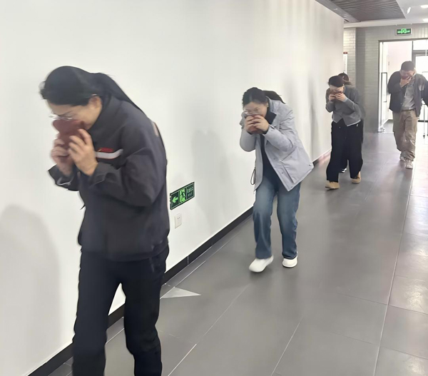 “纸上得来终觉浅,绝知此事要躬行”,理论学习终要落地实践,实战演练更显责任担当。为确保演练效果,工作人员提前制定详细方案,明确演练流程、疏散路线及各小组职责,通过现场讲解、路线标识等方式让每位员工了然于心。演练正式启动后,模拟办公楼某楼层突发火情,烟雾报警器即时响起,现场瞬间进入“应急状态”。疏散引导组迅速到位,指引员工弯腰捂鼻、有序列队,沿着预定疏散路线快速撤离;各岗位人员各司其职,配合完成火情上报、现场警戒等流程,整个过程紧张有序、衔接顺畅,全体员工仅用数分钟便安全抵达办公楼前安全区域,随后工作人员对疏散情况进行复盘总结,指出不足并明确改进方向。