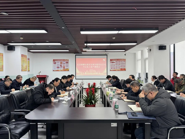 2月27日上午,北京路鹏达建设发展有限责任公司节后复工复产调度会在公司五层会议室召开。会议紧扣春节后项目复工复产核心任务,明确年度发展目标,协调解决项目推进重点难点问题,为公司全年工作开好局、起好步奠定坚实基础。公司高管、各部门负责人、各项目负责人及项目技术、生产、经营负责人参加会议。