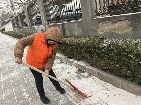 近日,受强冷空气影响,我市迎来持续降雪,午后人行步道积雪明显,给居民出行带来不便。为保障出行安全,路鹏达党支部迅速响应,于2025年12月12日下午,组织支部党员、入党积极分子和员工,开展了以“党旗飘扬风雪处 志愿服务暖民心”为主题的扫雪志愿服务活动。